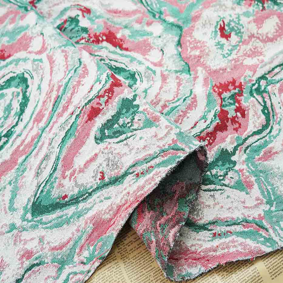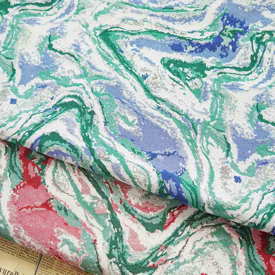 The combination of abstract patterns, yarn-dyed colors, and vintage aesthetics in the yarn-dyed vintage jacquard brocade fabric makes it a popular choice for various high-end applications, such as evening gowns, upholstery, draperies, and decorative accents. Its unique blend of sophistication and nostalgia adds a touch of elegance and grandeur to any project or garment.