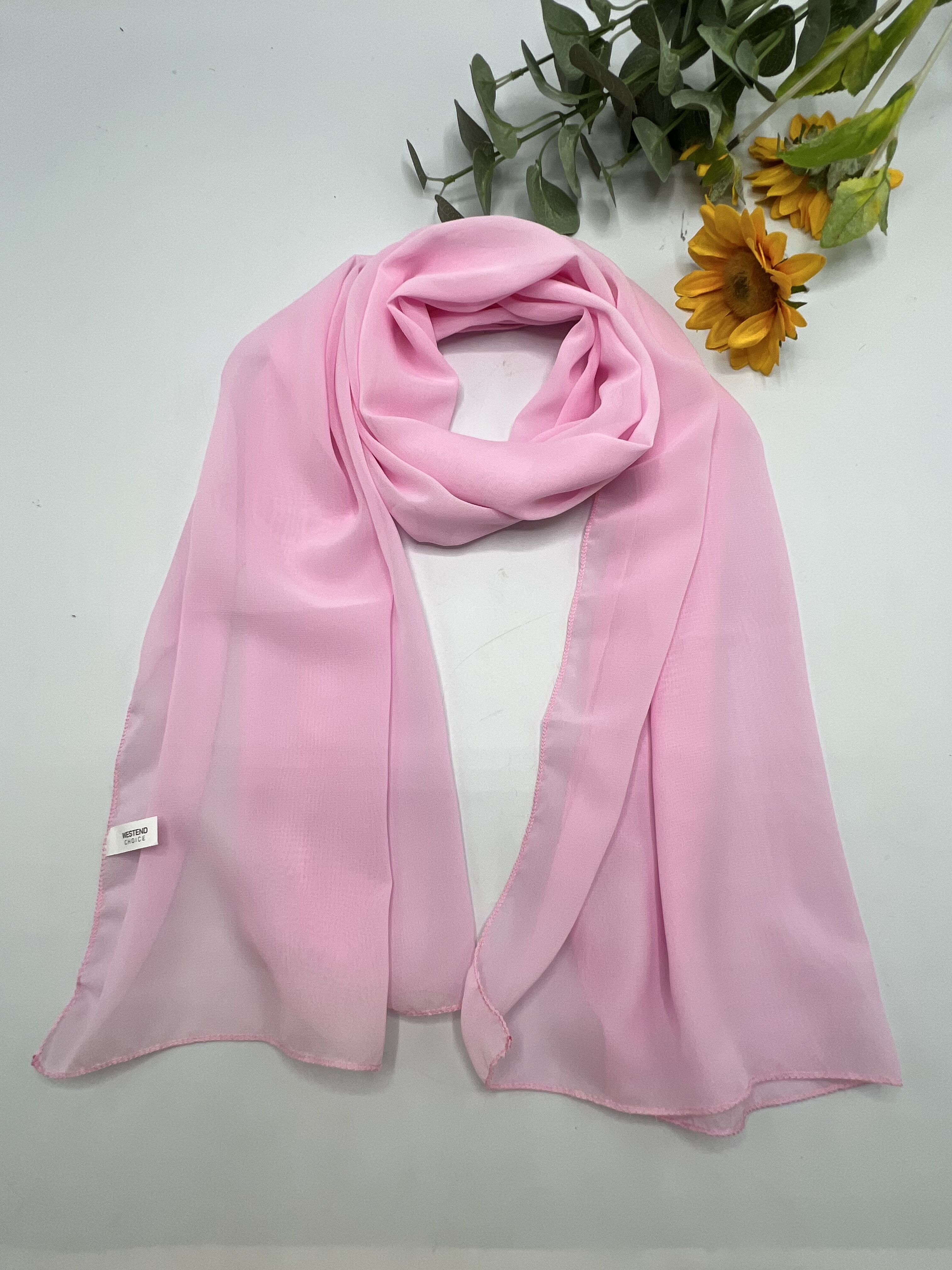 A chiffon scarf is a thin, soft, and breathable scarf, usually made of chiffon fabric. They are suitable for spring and summer as they do not feel overly hot. Chiffon scarves are usually very soft and comfortable to the touch, but also have a beautiful appearance.