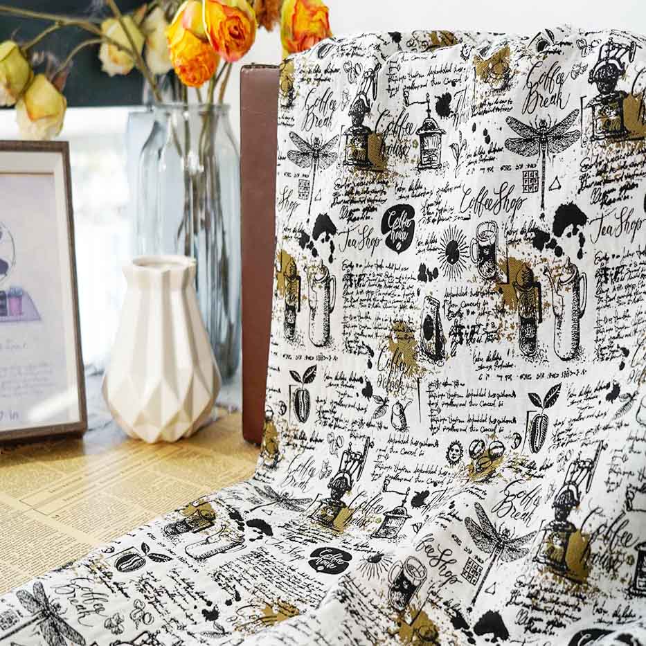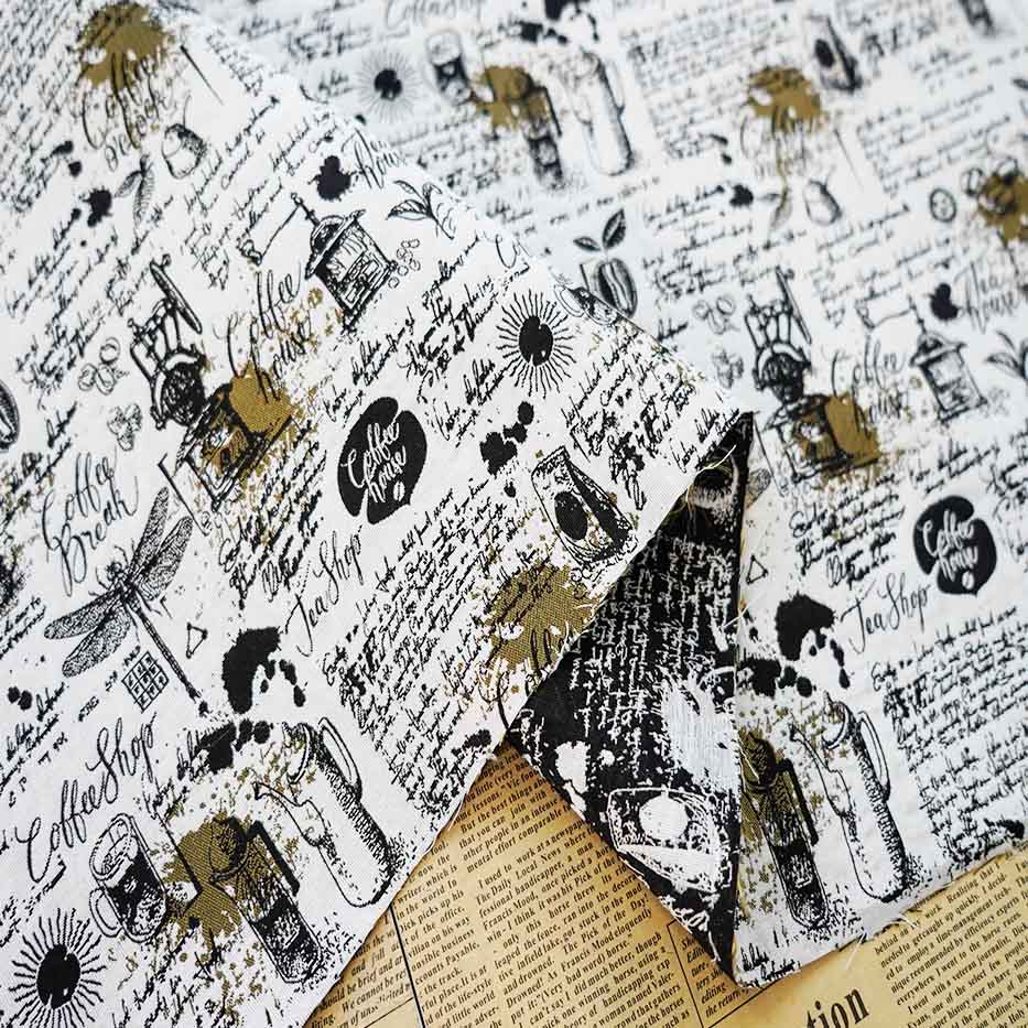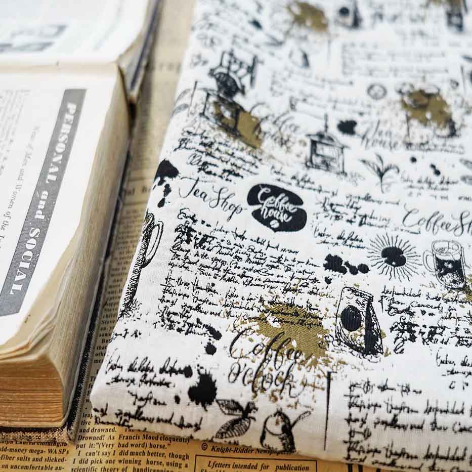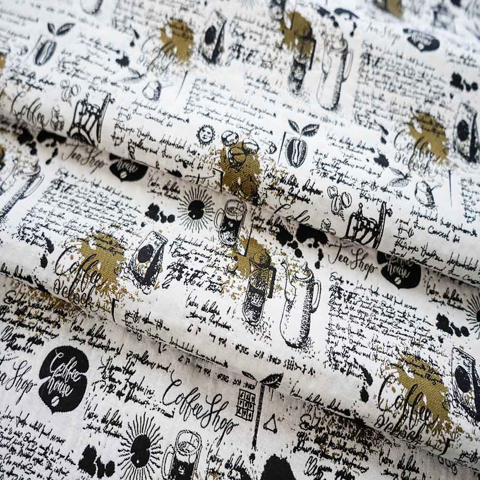 English Letter: The fabric incorporates English letters as part of the design. It could feature single letters, words, or even sentences written in English. The specific letters or words used would depend on the design of the fabric.