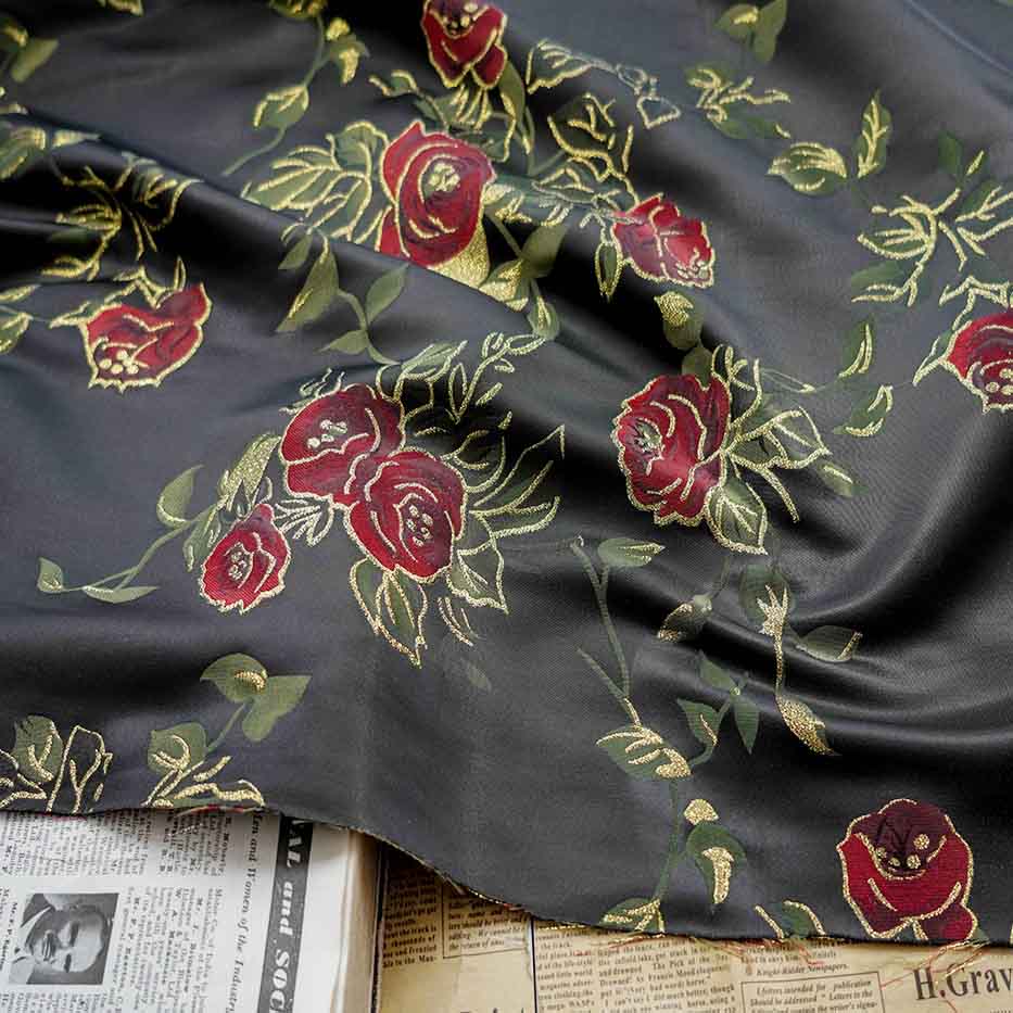Burgundy rose gold jacquard brocade fabric is a beautiful and versatile fabric choice that combines the deep color of burgundy with the lustrous elegance of rose gold, making it suitable for a range of decorative and fashion applications.