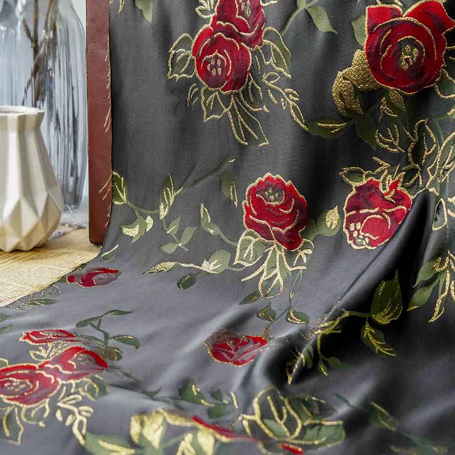 This type of fabric is often used for upholstery, drapery, and decorative purposes, as well as for creating fashion garments and accessories. It can be used to make elegant curtains, luxurious upholstery for furniture, or statement fashion pieces for special occasions.
