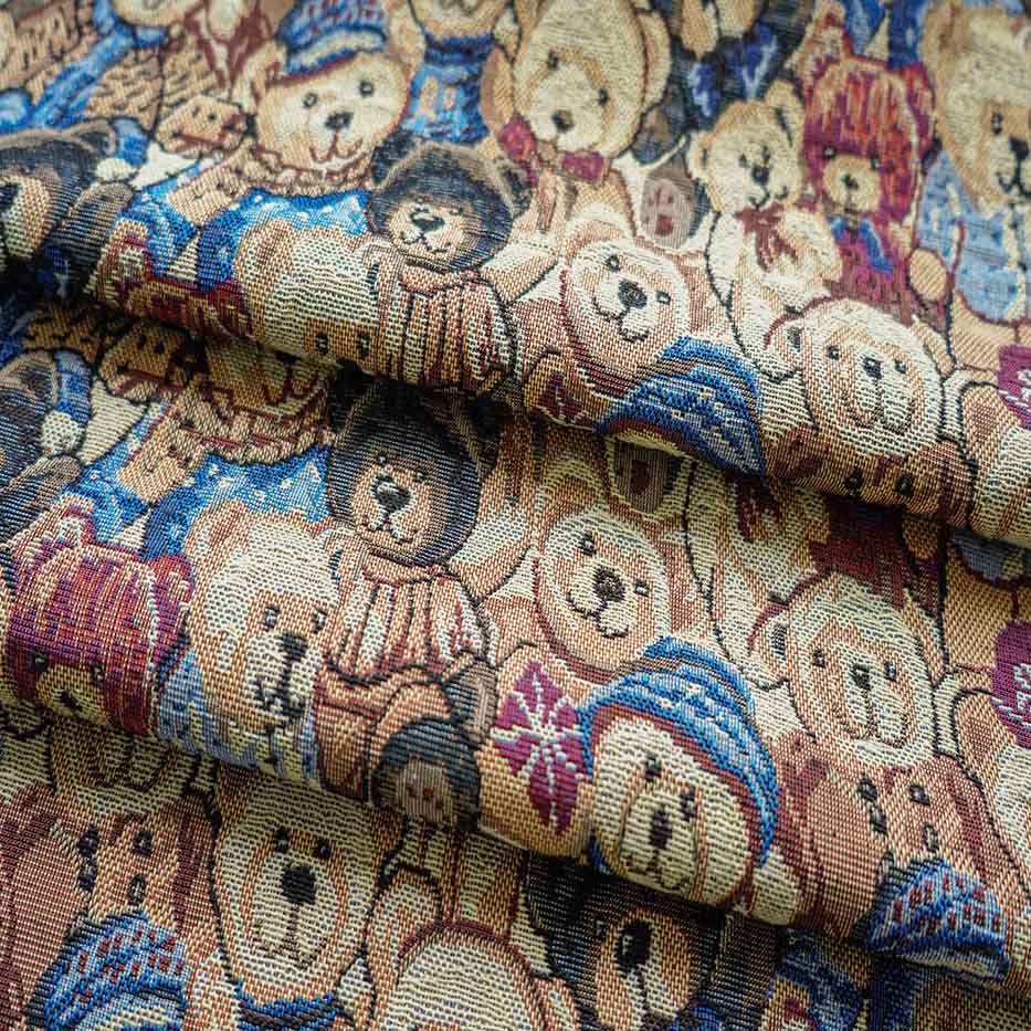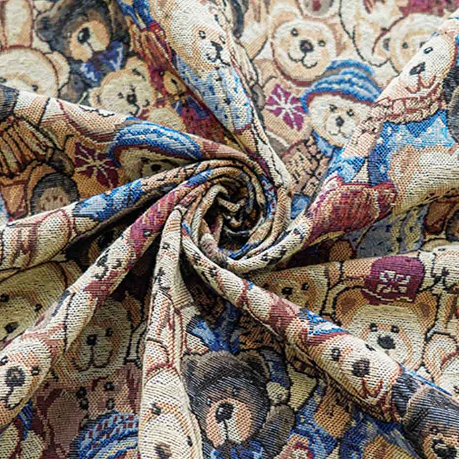 Cute cartoon bear jacquard brocade fabric refers to a type of fabric that features a jacquard weave with a pattern of cute cartoon bear motifs. Jacquard weaving is a specialized technique that allows for intricate and detailed designs to be woven into the fabric.