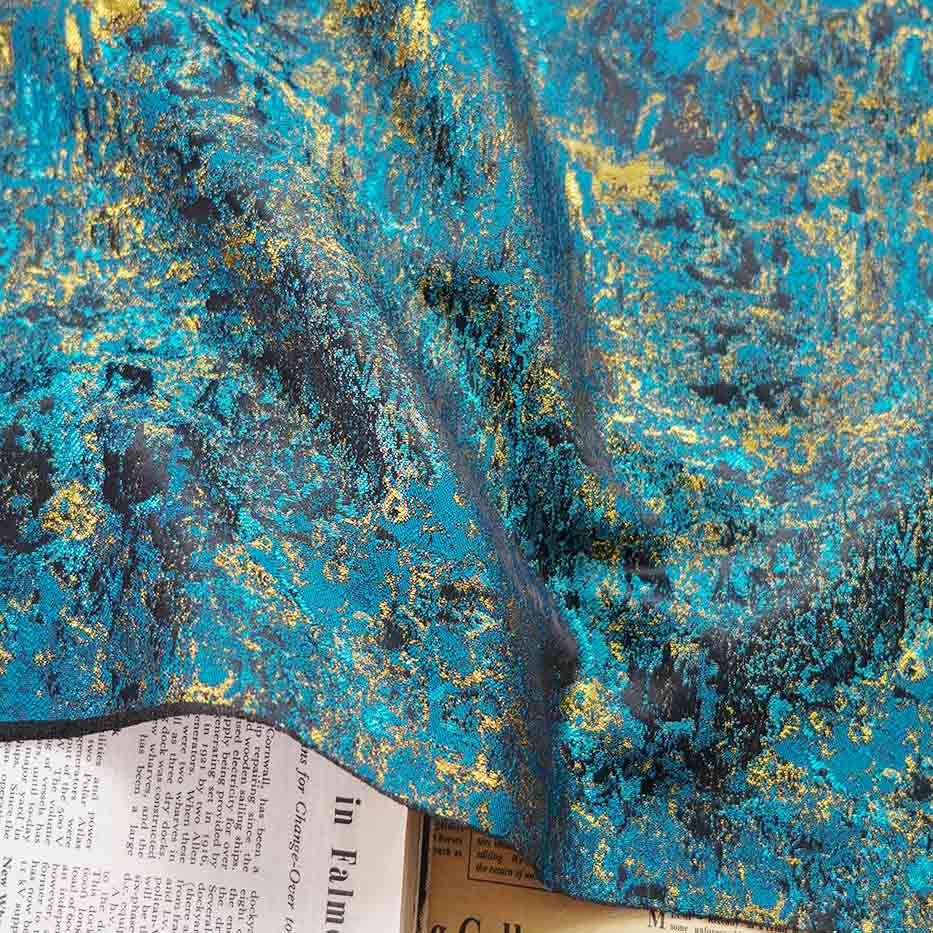 Fashion Blue Gold Contrast Jacquard Brocade Fabric