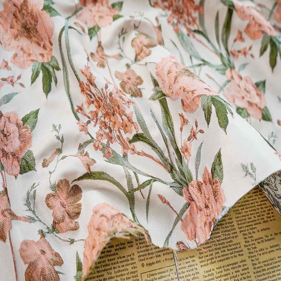 Small Fresh Embossed Floral Cream Jacquard Brocade Fabric is a type of ...