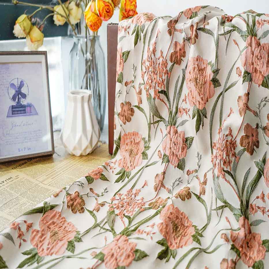 Small Fresh Embossed Floral Cream Jacquard Brocade Fabric PA-3420