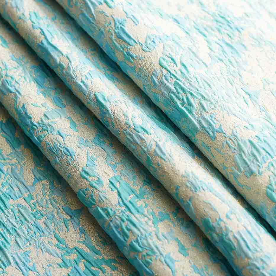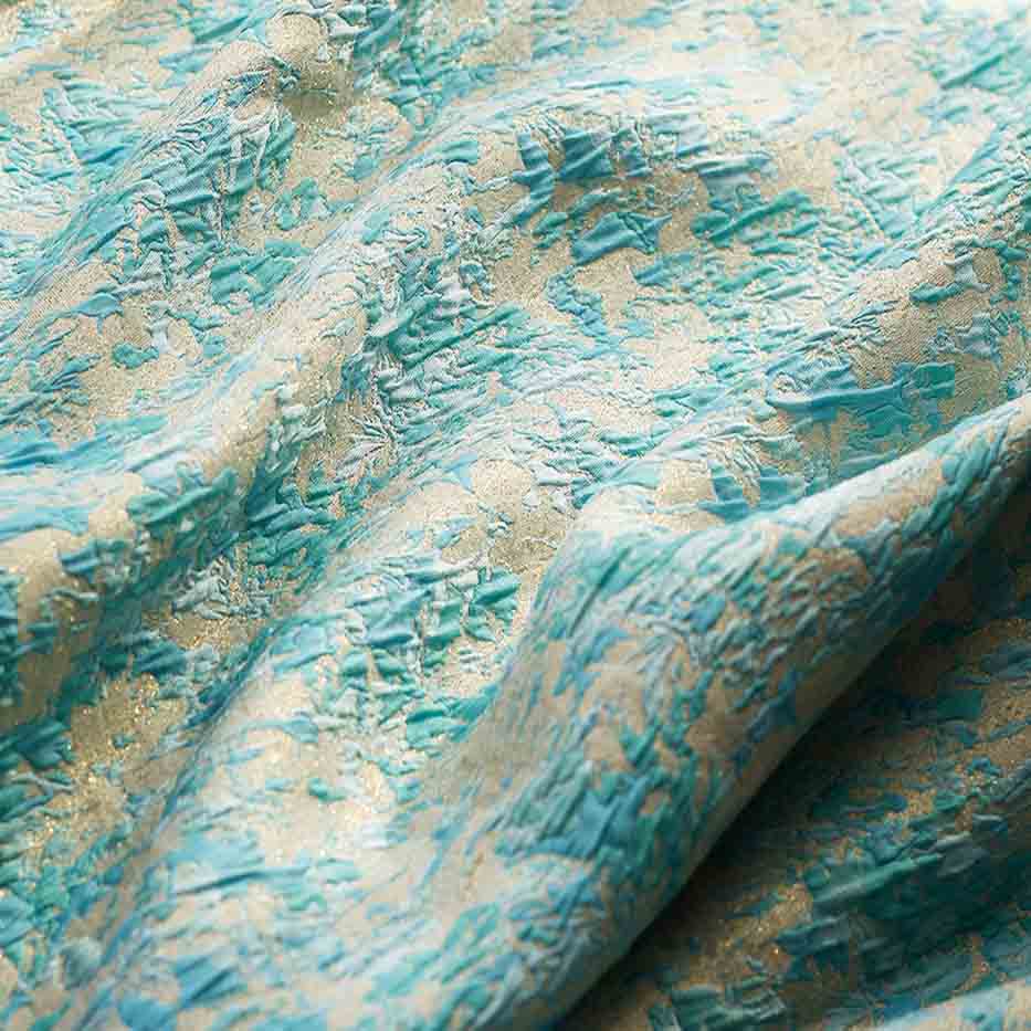 This fabric is truly magnificent and opulent, blending the richness of gold with a refreshing glacier-blue shade. Its embossed jacquard brocade pattern adds depth and texture to the design, making it a captivating choice for any project.