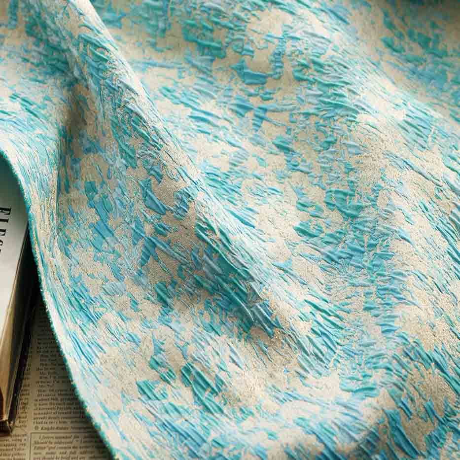 Gold Glacier Blue Embossed Jacquard Brocade Fabric is a captivating and opulent choice for those seeking a fabric that combines richness, texture, and contrasting colors. Its versatility and luxurious appearance make it a favored option for creating statement pieces in both fashion and interior design.