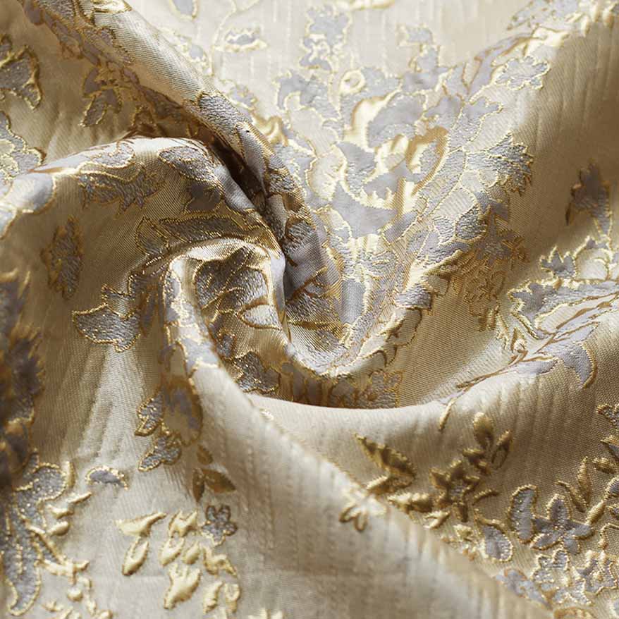 Metallic brocade fabric is a fabric that combines metallic wire with brocade fabric. Compared with ordinary brocade fabrics, metallic brocade fabrics have more texture and luster. Due to the addition of metal threads, the fabric usually has more structure and weight, making it more suitable for high-end clothing and decorations.Metallic brocade fabrics are available in a wide range of applications. It can be used to make various high-end clothing, such as evening dresses, stage clothing, etc., and can add more luxury and high-end feeling to these clothing. In addition, the wire brocade fabric can also be used to make various decorations, such as throw pillows, cushions, curtains, bedspreads, etc., making it more artistic and decorative. In addition, the wire brocade fabric can also be used in home accessories, luggage and other fields.It should be noted that although the metal brocade fabric is beautiful, due to the addition of metal wires, this fabric is usually more susceptible to damage and deformation than ordinary brocade fabrics. Therefore, more care is required in use and maintenance.
