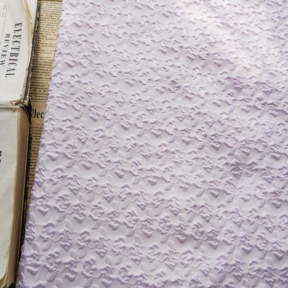 Lavender Color: The fabric features a soft and delicate lavender color. Lavender is associated with tranquility, femininity, and grace. It brings a calming and soothing vibe to the fabric, creating a serene and elegant aesthetic.