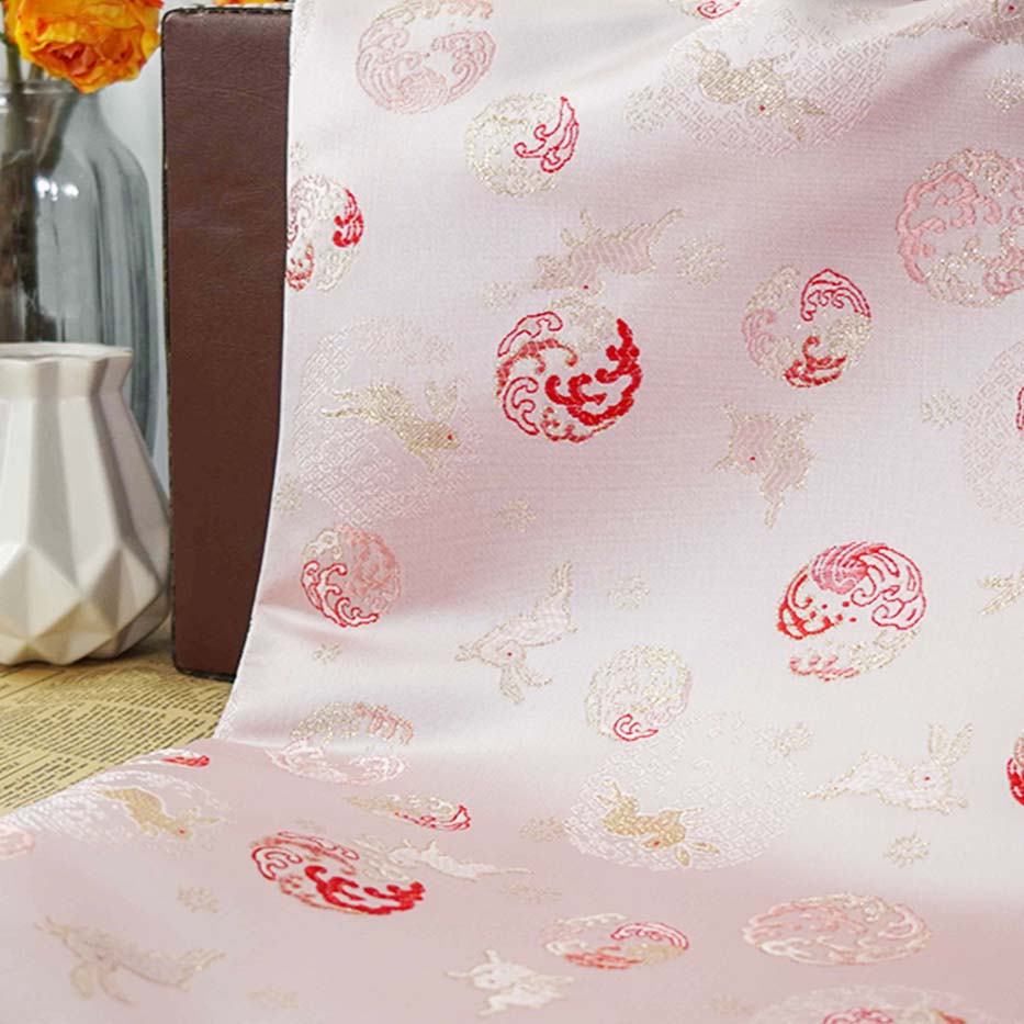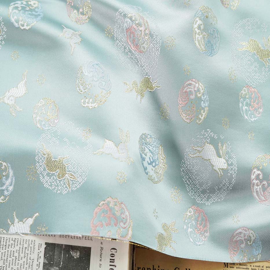 Modern Chinese Wind Wave Rabbit Jacquard Brocade Fabric refers to a contemporary style of jacquard brocade fabric that incorporates Chinese cultural elements, such as the "Chinese wind" or traditional Chinese motifs, combined with a wave pattern and rabbit design.