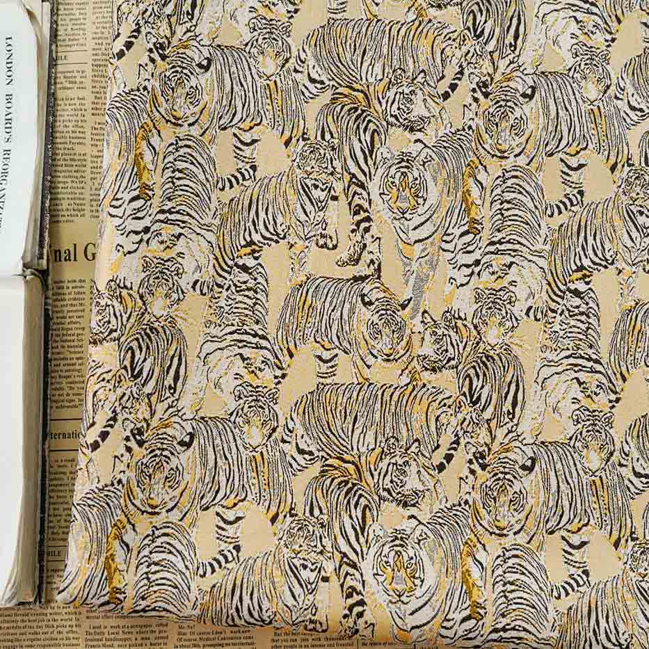 When working with this fabric, it is essential to consider its dominant pattern. Designers often pair it with solid-colored fabrics to balance the visual impact and allow the tiger motif to take center stage. Care should also be taken during sewing and handling to prevent any damage to the delicate jacquard weave.