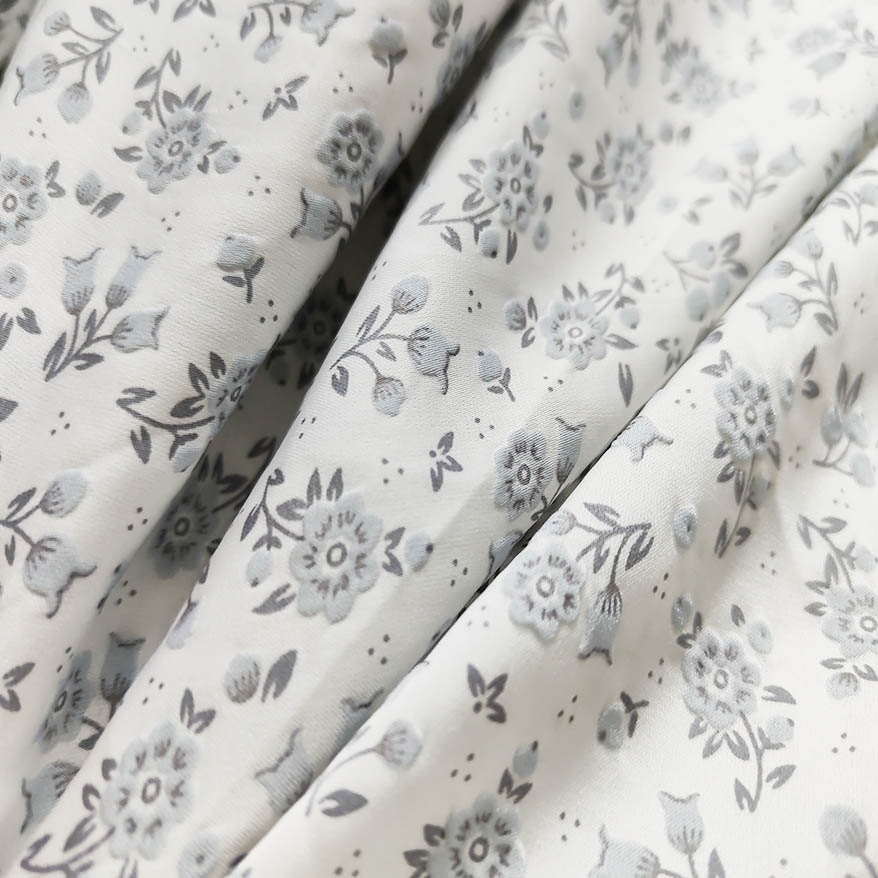Printed Florals: In addition to the 3D embossing, the fabric features printed floral patterns. The custom printing allows for a wide range of design options, enabling customers to create personalized and eye-catching floral arrangements that suit their individual taste and style.
