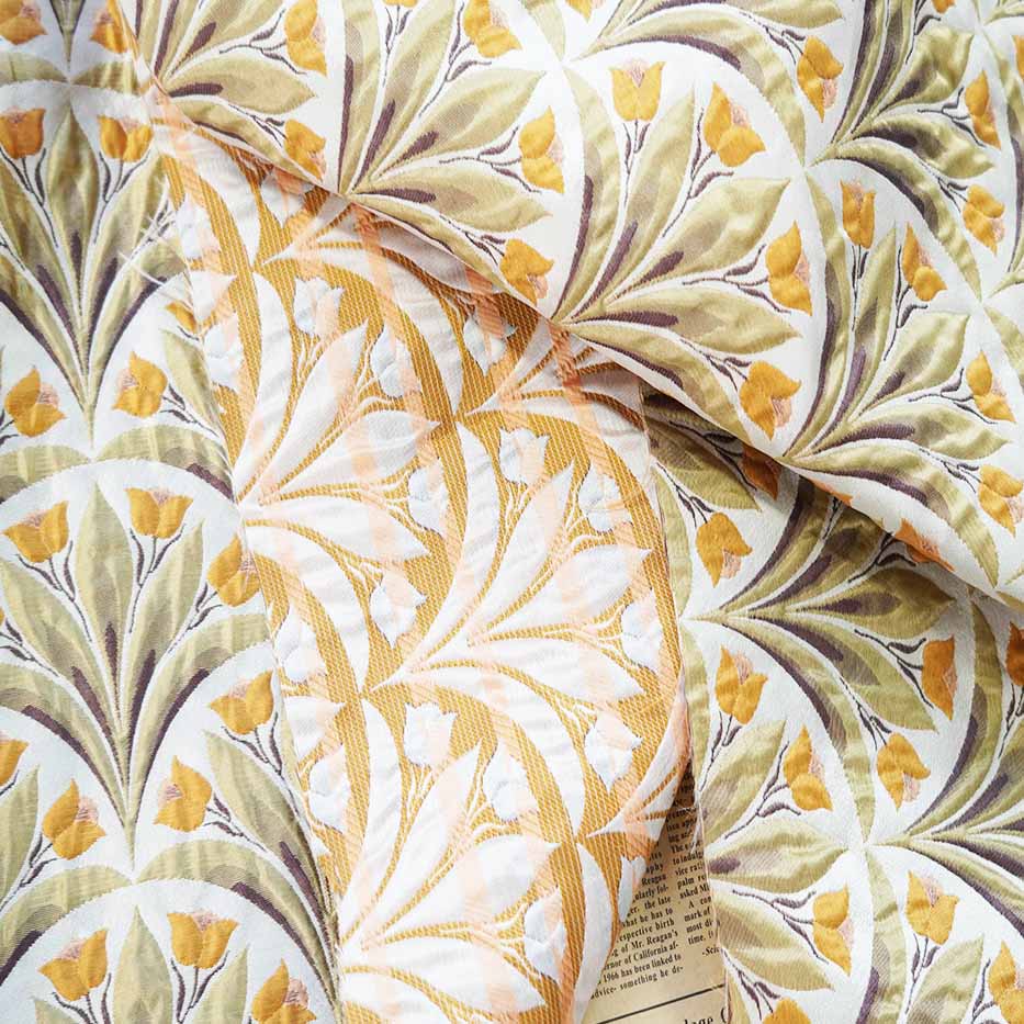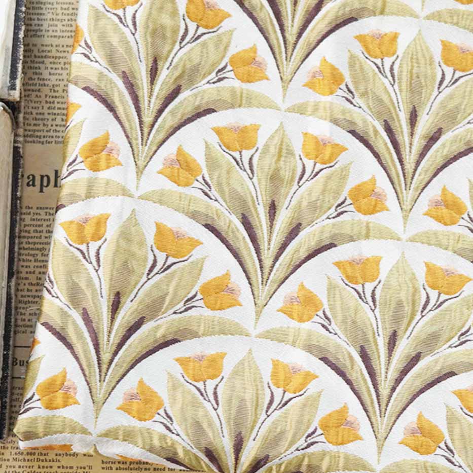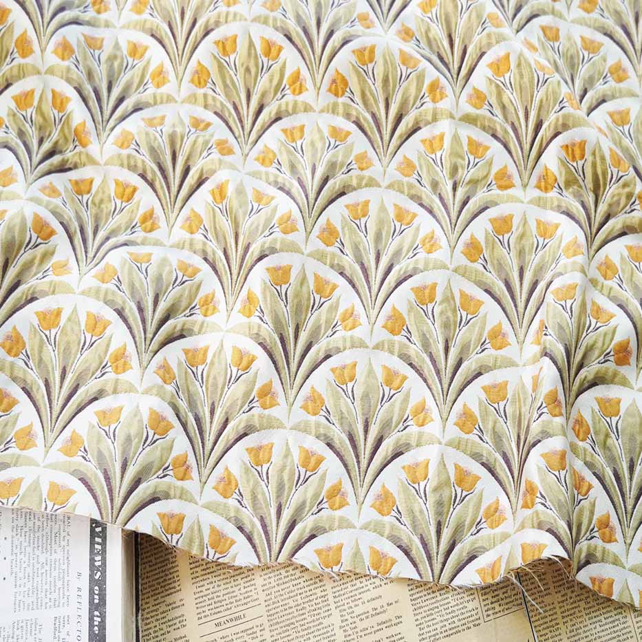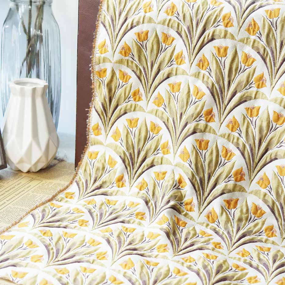 Oil painting tulip jacquard brocade fabric refers to a type of fabric that features a design of oil-painted tulips created using jacquard weaving technique. Jacquard weaving is a method that allows for complex patterns to be woven into the fabric using a special loom.