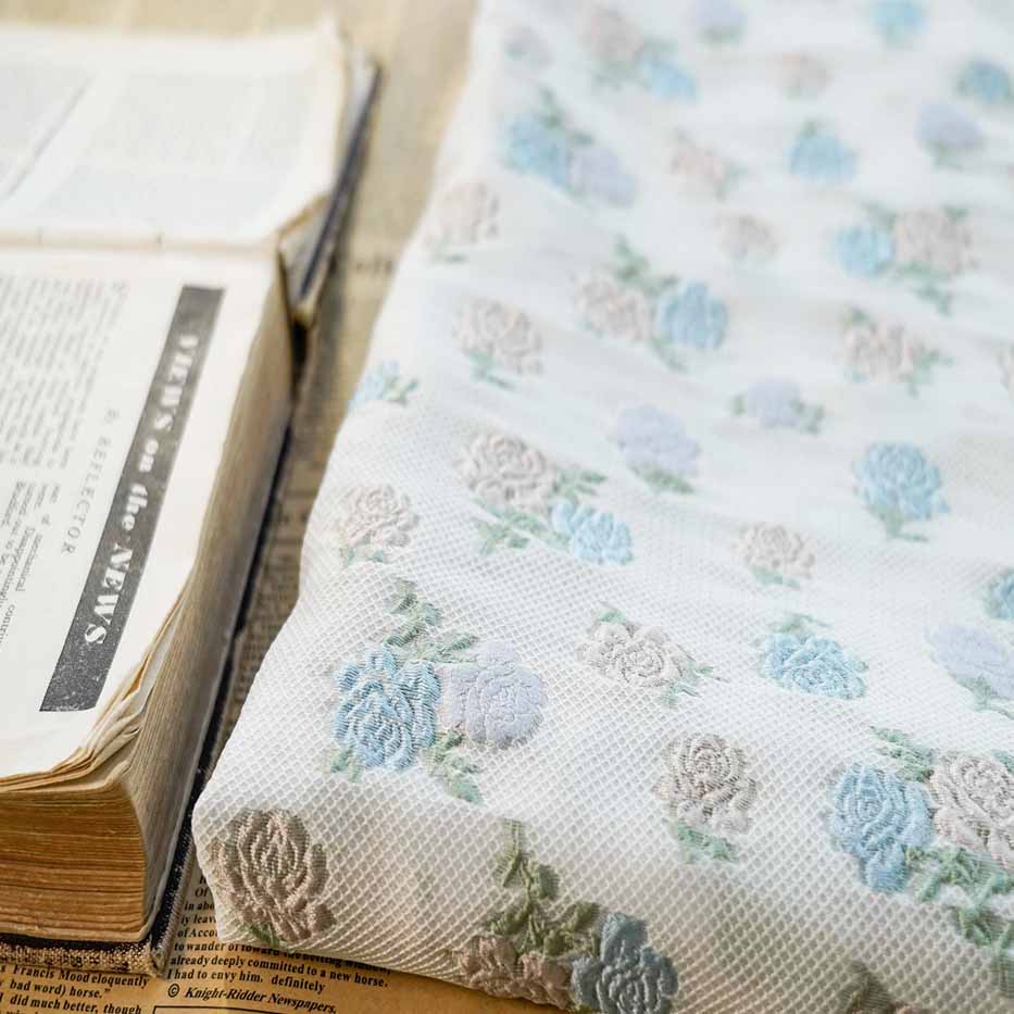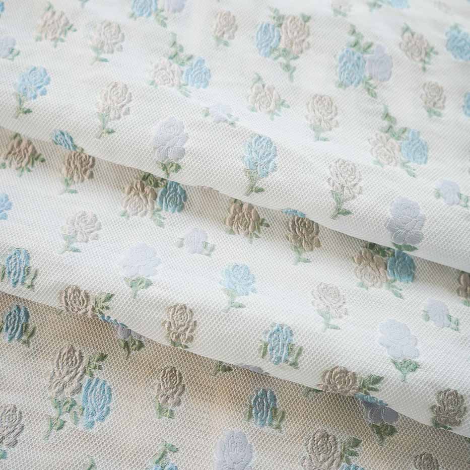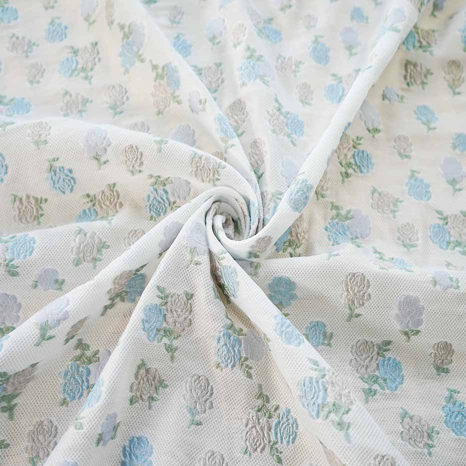 Small Fresh Clusters of Rose Jacquard Brocade Fabric is a fabric that has a delicate and youthful style, incorporates clusters of roses in its design, and is woven using a jacquard technique with a luxurious brocade appearance. The fabric is likely to have a vibrant and refreshing look, perfect for creating elegant and eye-catching garments or decor items.