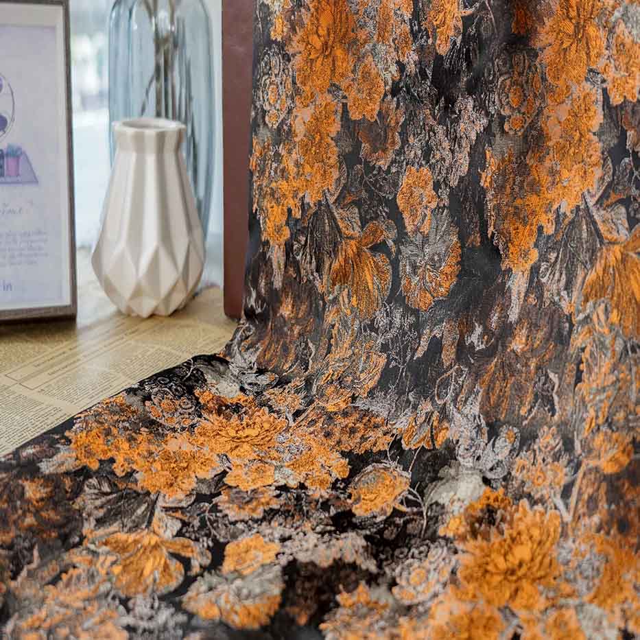 Oil painting sense: This implies that the floral motifs on the fabric are inspired by the techniques and aesthetics of oil painting. Oil paintings often have rich colors, soft brushstrokes, and a sense of depth and texture, which are likely translated into the fabric's design.