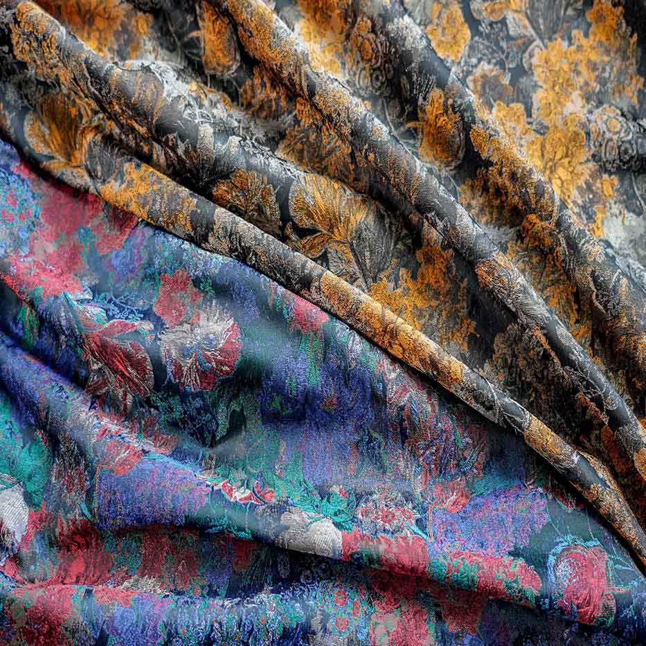 In summary, soft flower oil painting sense jacquard brocade fabric combines softness, floral motifs inspired by oil paintings, intricate jacquard weaving, and decorative brocade elements. This fabric is likely to have a luxurious and artistic aesthetic, making it suitable for various applications such as evening gowns, upholstery, or other high-end fashion and decorative uses.