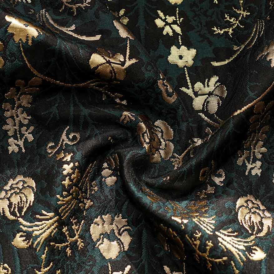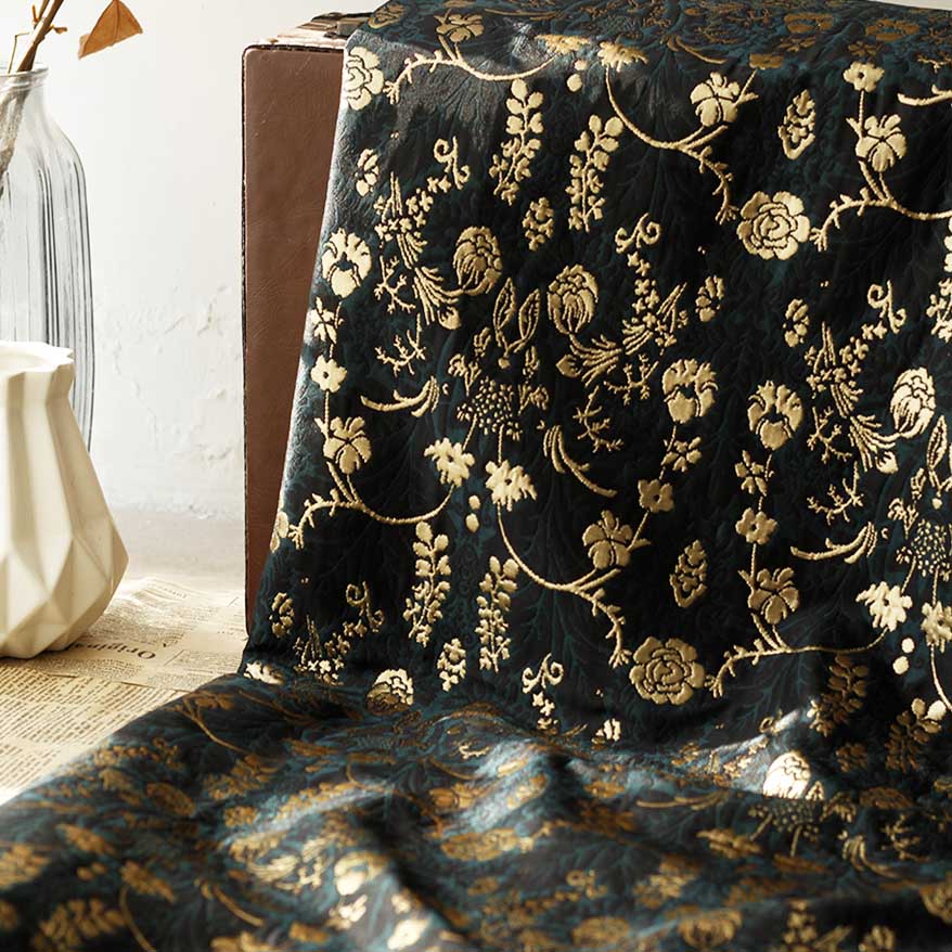 Gold embossed jacquard brocade fabric is a kind of jacquard brocade fabric with gold embossed patterns. It combines the luster of gold silk and the soft texture of brocade, and forms a raised relief effect on the fabric through jacquard technology, creating a gorgeous and noble visual effect.